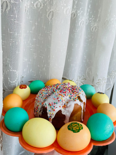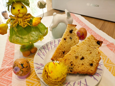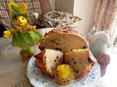 Конечно, я не могла пройти мимо этого легендарного, на нашем сайте, рецепта "Классический кулич пасхальный с изюмом как у бабушки". Решение испечь кулич было принято в последний момент, в субботу после 21-00. Весь процесс закончился в 23-50, поэтому я ничем его уже не украшала. Кулич получился такой красивый, что в украшениях не нуждается. Весь процесс описан автором в таких красках и подробностях, что вопросов никаких не может возникнуть. Всё, как говорится, разжёвано. Никаких трудностей при замесе теста не возникло. У меня не было традиционных бумажных формочек, выпекала в обычной форме для кекса.Почему куличи пекут в узких высоких формах? Потому что весной всё растёт и стремится вверх, к солнышку. У меня хоть и в обычной форме кулич, на фото видно, что верхушка практически такого же размера, как и низ, он вырос в 2 раза. Делала половину порции, благо, на сайте есть удобный калькулятор для пересчета количества ингредиентов на нужное вам количество порций. На расстойку ставила в духовку с включенной лампочкой. Все ингредиенты отмеряла точно как у автора, ничего не редактировала от себя. Выпекала около часа, всё-таки у меня он был один и довольно большой. Минут через 45, когда верхушка подрумянилась, а лучинка (для проверки готовности теста) выходила из кулича ещё сырая, накрыла верх фольгой и убавила температуру на 10 градусов. Конечно, кулич получился ароматным и очень вкусным, по другому и быть не могло! Присоединяюсь ко всем восторженным отзывам и словам благодарности автору за её труд. Огромная Вам благодарность за то, что делитесь своим опытом и знаниями с начинающими и опытными хозяюшками! Поздравляю всех со Светлым Праздником! Желаю всем мира!