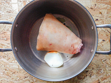 Рулька у меня была весом ровно 1 кг. При варке добавила гвоздику, душистый перец, лавровый лист и половинку большой луковицы. Варилась рулька у меня 3 часа.
