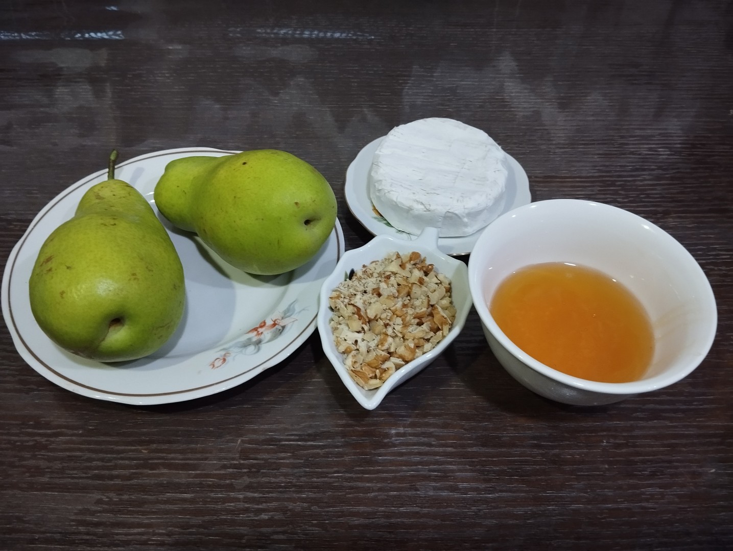 Как запечь груши, запеченные с сыром камамбер и мёдом в духовке? Подготовьте продукты. Груши возьмите сладкие, но при этом твердые, такие, как, например, Конференция. Сыр выбирайте качественный, натуральный, вкусный — от этого будет зависеть вкус всего блюда. Орехи, кроме кедровых, подойдут любые — грецкие, фундук, пекан. Мёд возьмите жидкий.