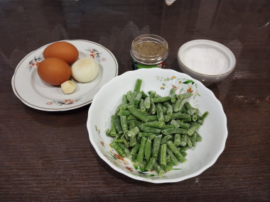 Как пожарить стручковую фасоль с яйцом на сковороде? Подготовьте продукты. Фасоль, если она у вас замороженная, можете не размораживать — это произойдет при варке. Лук и чеснок очистите. Яйца помойте и обсушите.