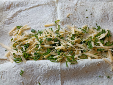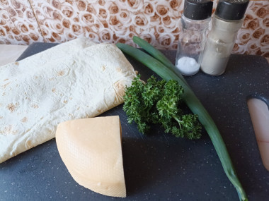 Как сделать конвертики из лаваша с начинкой из сыра с зеленью на сковороде? Очень просто и быстро! Для начала подготовьте необходимые ингредиенты по списку. Сорт сыра можете подбирать по своему вкусу. Например заменить обычный сыр на моцареллу, сулугуни или брынзу. Вместо армянского лаваша можете также использовать пшеничный ролл. О том, как правильно выбирать лаваш, читайте в конце рецепта.