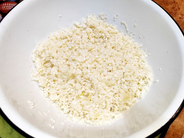 Капусту я перебила в блендере в сыром виде, получился "каракулевый" фарш - нежная масса, слегка влажная. Переложила в отдельную чашу.