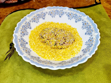 Дальше, обваляла котлеты из цветной капусты в кукурузных хлопьях быстрого приготовления и обжарила в оливковом масле на сковороде.