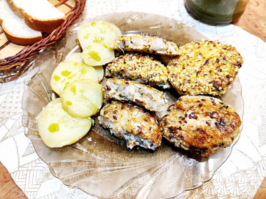 Можете обвалять котлетки либо в молотом сухом льне, либо в панировочных сухарях, либо в муке. Я пожарила без ничего и очень хорошо получилось. Только когда формировала котлеты, фарш немного лип к рукам.
