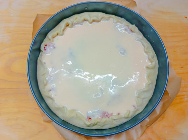 Для заливки смешала яйца категории С1 и сметану (у меня домашняя из 10-процентных сливок).