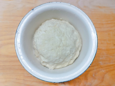 Учтите, что муки может понадобится больше или меньше. Тесто само возьмет, сколько ему нужно. Если тесто все еще липнет, а муки требуется еще больше, чем по рецепту, лучше не забивайте тесто мукой, иначе в готовом виде тесто получится слишком плотное и невкусное. Лучше посыпьте мукой скалку и стол при раскатке. Скатайте тесто в шар.