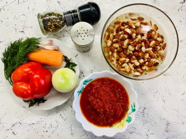 Как сделать фасоль, тушеную с овощами в томатном соусе? Поверьте, это совсем несложно. Подготовьте все необходимые продукты.