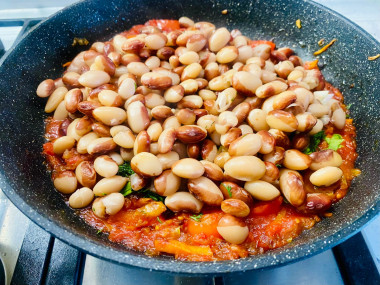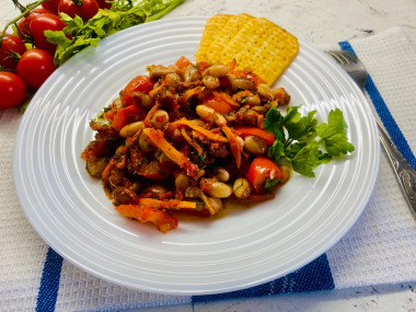 Вкусная фасоль с овощами в томатном соусе готова. Приятного аппетита!