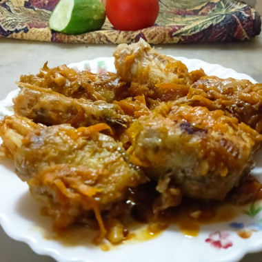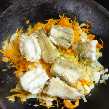 Приготовила рыбку по этому рецепту, получилось необыкновенно вкусно. Минтай, вроде такая рыба, сама по себе пресноватая, впитала в себя всю радугу вкусов, а по запаху эта овощная поджарочка напоминает школьную подливу. Минтай получился мягким, и в то же время сочным и мясистым, в меру пряным, и нежным. Спасибо за рецепт.