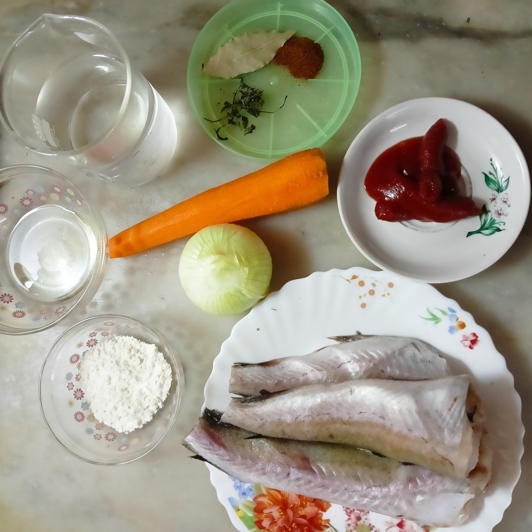 Как потушить минтай с луком и морковью на сковороде? Подготовьте необходимые продукты. Если рыба замороженная, заранее разморозьте ее в холодильнике. Правильно разморозить рыбу помогут советы в статье по ссылке в конце рецепта.