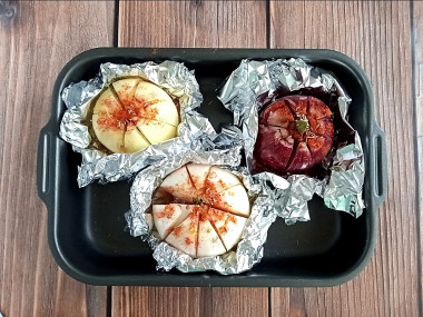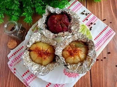 Подавайте лук, запеченный в фольге в духовке, к столу. Приятного аппетита!