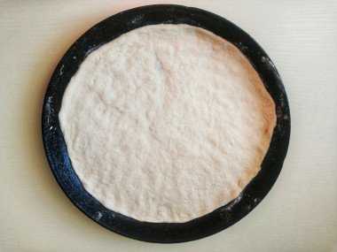 На пергаменте раскатайте тесто в тонкий круглый пласт. У меня диаметр примерно 25 см. Сформируйте небольшие бортики. Как правильно выбрать пергамент, можно прочитать в статье по ссылке в конце рецепта.