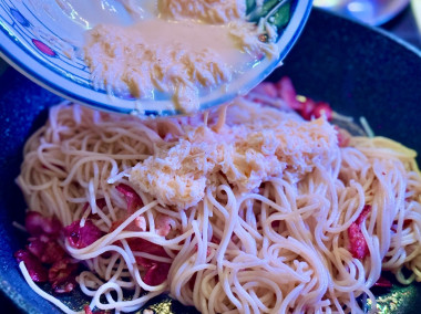Сделайте соус карбонара. Сыр натрите на крупной терке. Берите сыры только твердых сортов, которые хорошо плавятся и не содержат заменителей молочных жиров. Качество сыра будет особо влиять на вкус блюда. Хорошо подойдет пармезан. С ним соус получается очень ароматным и вкусным.