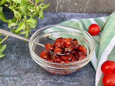 Потрясающая, пикантная закуска. Покоряет с первого кусочка! Вяленые помидоры черри делаются совсем не сложно. Стоит уделить этому внимание и у вас на столе восхитительное блюдо, которое без сомнения оценят и родные, и друзья.