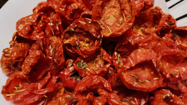 Получились очень вкусные вяленые помидоры черри! Вяленые помидоры можно кушать, как самостоятельную закуску или использовать, как ингредиент к салату. Масло, пропитанное вялеными помидорами, чесноком и смесью сухих трав, отлично подойдёт для заправки салата.