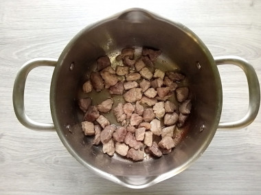Мясо нарежьте небольшими кусочками одинакового размера.