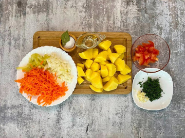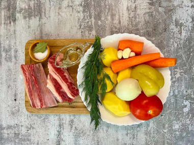 Как сварить суп из свиных ребрышек и картошкой? Для начала подготовьте необходимые продукты. Свежие свиные ребрышки можете заменить на копченые. Овощную часть можете заменять или дополнять по своему вкусу. Количество овощей в супе указано примерно, можно менять пропорции на свой вкус.
