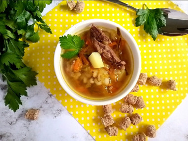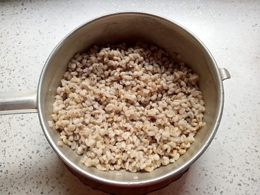 Перловую крупу предварительно хорошо промойте и залейте холодной водой на 20 минут. Крупа немного набухнет и быстрее сварится. Советы по приготовлению блюд с перловой крупой можно прочитать по ссылке в конце рецепта.