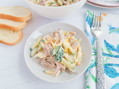 Салат с языком и огурцами выложите горкой на тарелку и сразу же подайте к столу. Приятного аппетита!