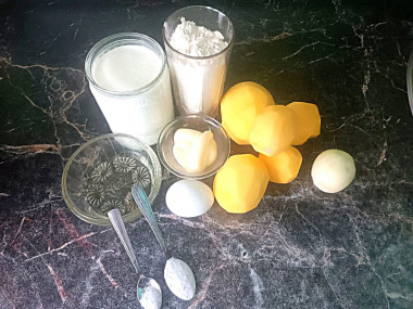 Как испечь заливной пирог с картошкой и луком на кефире? Для начала подготовьте все необходимые ингредиенты для начинки. Картофель вымойте и очистите. Лук очистите от шелухи. Включите духовку на 180 градусов.
