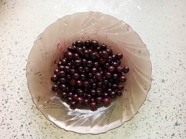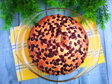 Для начинки взяла замороженную черную смородину. Разморозила ее в микроволновке, а сок слила. Ягоды разложила поверх теста. Пирог выпекался у меня 55 минут до тех пор, пока деревянная палочка не вышла сухой из серединки.
