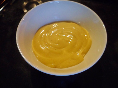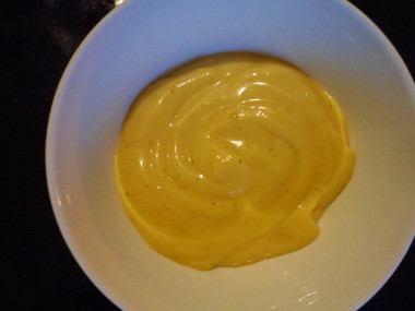 Мне нужно было немного майонеза для блюда, которое по рецепту следовало запечь, поэтому выбрала соус на сыром желтке. Хотя рецепт называется майонез без блендера, я для того чтобы немного ускорить процесс приготовления, всё-таки использовала блендер, правда с насадкой венчик. У меня в блендере 11 скоростей. Сначала на 7й скорости взбила желток с 1 ч.л. горчицы, 1 ч.л. рисового уксуса, солью и перцем. Потом добавила 15 мл масла и снова взбила на той же скорости. Следом снова добавила 15 мл масла и опять взбила. Всего по этой же схеме я добавила 60 мл масла, чтобы получить майонез нужной консистенции. В конце недолго взбила соус на максимальной скорости. Получилось 80 грамм очень вкусного соуса. Спасибо огромное за рецепт!