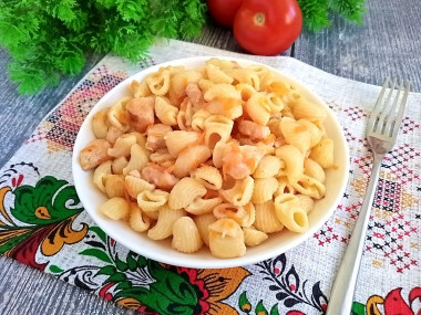 Макароны с куриной грудкой на сковороде готовы. Приятного аппетита!