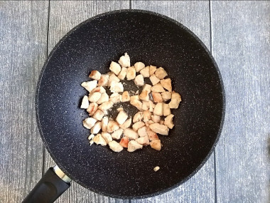 Куриную грудку помойте, обсушите бумажным полотенцем. Нарежьте на небольшие кусочки.