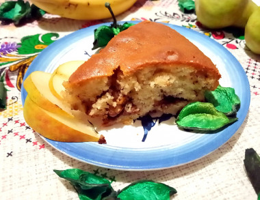 Вечером срочно захотелось пирога к чаю. Решила испечь грушевый пирог в духовке, тем более груша и шоколад были в наличии. Правда вместо тыквенных семечек взяла грецкие орехи.