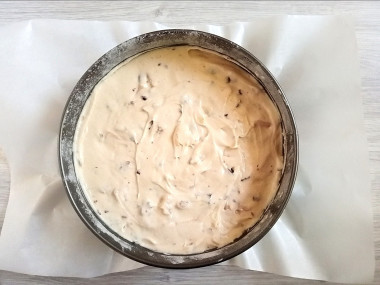 Дно формы для выпечки застелите пергаментом, бока смажьте тонким слоем сливочного или растительного масла и припудрите мукой. У меня форма диаметром 20 см. Информацию о выборе формы читайте в статье после описания рецепта.