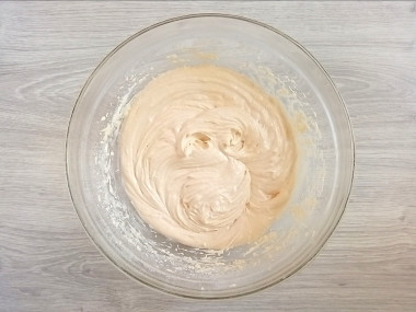 Мягкое сливочное масло соедините с сахаром и взбейте миксером до гладкой, кремообразной консистенции.