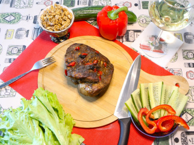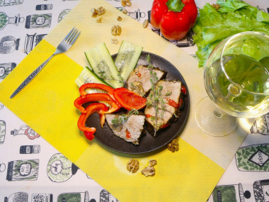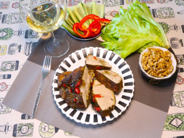 Сегодня на обед захотелось мяса, мой выбор пал на фаршированную свинину в духовке. Мясо выбрал филе свинины, фисташки заменил на грецкий орех (в комбинации с Хмели-сунели получился легко узнаваемый вкус Грузинской кухни), в остальном следовал рецепту. Блюдо мне очень понравилось, хорошо как закуска в горячем и холодном виде, так и с гарниром. Несмотря на нежирную часть свинины, за счет маринада и сочного болгарского перца внутри мясо получилось сочное и нежное, специи дополненные орехами дали прекрасное сочетание со вкусом мяса с отсылкой к Кавказкой кухне. Спасибо за рецепт.
