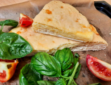 сделала сразу двойную порцию - лепешки выпекала по очереди. Кстати, времени на выпекание у меня ушло несколько больше - примерно 25 минут. Поэтому призываю, как и автор, ориентироваться на особенности своей духовки и в первый раз обязательно следить за процессом. Как только лепешка подрумянится, можно вынимать (в последние 5 минут выпекания перемещала лепешку на верхний ярус духовки, чтобы лучше подрумянилась сверху). Резюме: лепешки понравились всем, включая искушенную мужскую половину семейства и младшую, очень привередливую в еде, дочь
