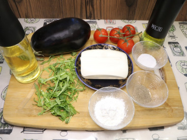 Как сделать салат с хрустящими баклажанами и сыром страчателла? Подготовьте необходимые ингредиенты. Страчателлу можете заменить на близкую по вкусу буратту. Либо заменить на другие сыры по вашему вкусу: моцареллу, брынзу, фету и т. д. О различных видах сыров читайте в статье в конце этого рецепта под шагами. Масло я брала оливковое прямого отжима (extra virgin), но можете взять любое растительное по вкусу.