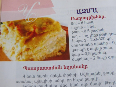 Оксана, бывают же такие совпадения: вчера купила брошюрку с кулинарными рецептами и в ней мне приглянулся рецепт мне не известной Ачмы. Рецепт мне показался очень сытным, калорийным, но вкусным. Сегодня захожу на форум, а там опять уже мне знакомое слово Ачма(текст написан на армянском)