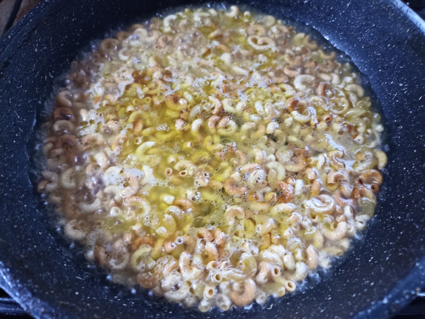 Обжарьте макароны на умеренном огне, помешивая до легкой румяности.Шаг 5:
