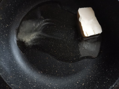 На сковороду добавьте растительное масло и растопите сливочное масло. Как правильно выбрать сковороду для приготовления, читайте в статье после описания рецепта.Шаг 3: