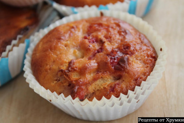 При помощи ложки заполните формочки для кексов тестом (примерно на 2/3). В середине сделайте углубление, положите начинку и закройте ее тестом.