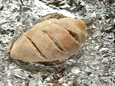 В самом конце переложите куриную грудку на фольгу и плотно заверните ее.