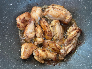 В казане или кастрюле с толстым дном на среднем огне разогрейте оставшееся растительное масло, выложите курицу обжарьте, помешивая, до румяной корочки. Переложите курицу на тарелку. О том, как правильно выбрать растительное масло, читайте в статье, ссылка в конце рецепта.