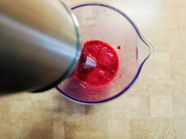Осталось лишь взбить все в однородную массу! Не забудьте в конце проверить ложечкой, не осталось ли на дне крупных кусочков банана или клубники.