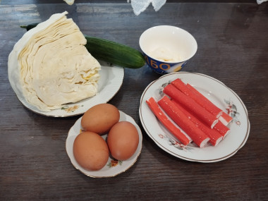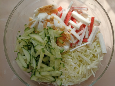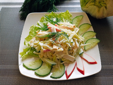 Крабовый салат с капустой и огурцом
