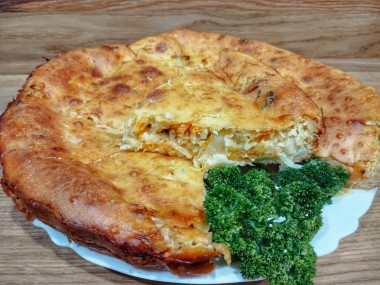 Заливной пирог с капустой переложите на блюдо, нарежьте на кусочки и подайте к столу. Приятного аппетита!