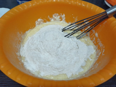 В получившуюся массу добавьте соду и перемешайте. Оставьте тесто на 15 минут. За это время оно увеличиться в объеме и станет воздушным. Включите духовку на 180 градусов.