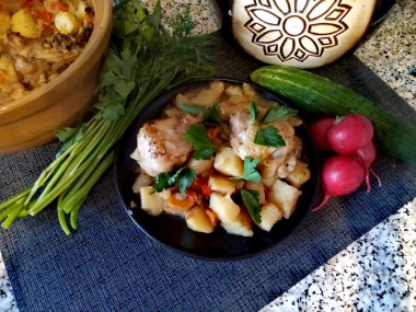 Жаркое с картошкой и курицей сразу подавайте к столу. Приятного аппетита!