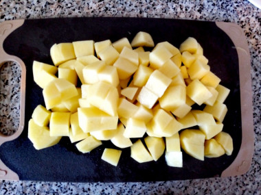 Предварительно очищенный картофель помойте, нарежьте средними кубиками.