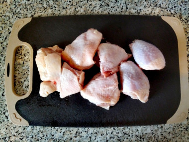 Как сделать жаркое с картошкой и курицей в духовке? Подготовьте необходимые продукты. Хорошо подойдут куриные бедра или голени, с ними блюдо будет сочнее. Так же можно взять куриную грудку либо филе. Список овощей можно изменить или добавить, например, брокколи, кабачки, баклажаны.