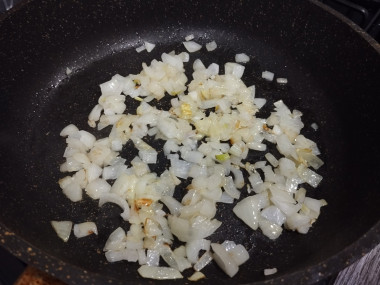 В сковороде на небольшом огне разогрейте растительное масло. Выложите лук и обжарьте, помешивая, 7-10 минут до золотистого цвета. О том, как подобрать идеальную сковороду, а также как правильно выбрать растительное масло, читайте в отдельных статьях, ссылки в конце рецепта.