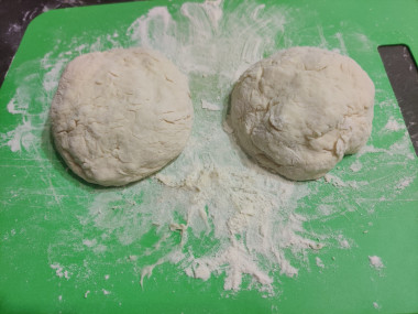 Липкость уйдет во время подъема и раскатывания теста. Тесто разделите на две равные части. Каждую часть скатайте в шар, выложите в пакет и оставьте на 1 час в тепле для подъема. Я ставлю в предварительно нагретую слегка теплую духовку. В ней тесто поднимается очень хорошо. Если не планируете делать две пиццы, уберите одну часть теста в холодильник. Но учтите, что дрожжевое тесто можно хранить в холодильнике не дольше суток, иначе оно перебродит.