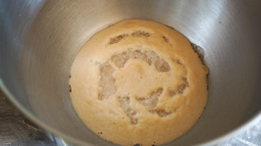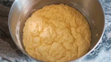 Подготовила ингредиенты, граммовки для теста использовала по рекомендации автора. Тесто замешала планетарным миксером, далее отправила на час в духовку, чтобы тесто подошло. Тесто увеличилось в объеме примерно в 2,5 раза, стало очень эластичным и мягким.